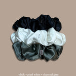 LOOK GREAT ON YOUR WRIST - available in more than 10 unique luxurious hues. These silk scrunchies look equally on your wrist and will come in handy whenever you need to keep your hair out of your face