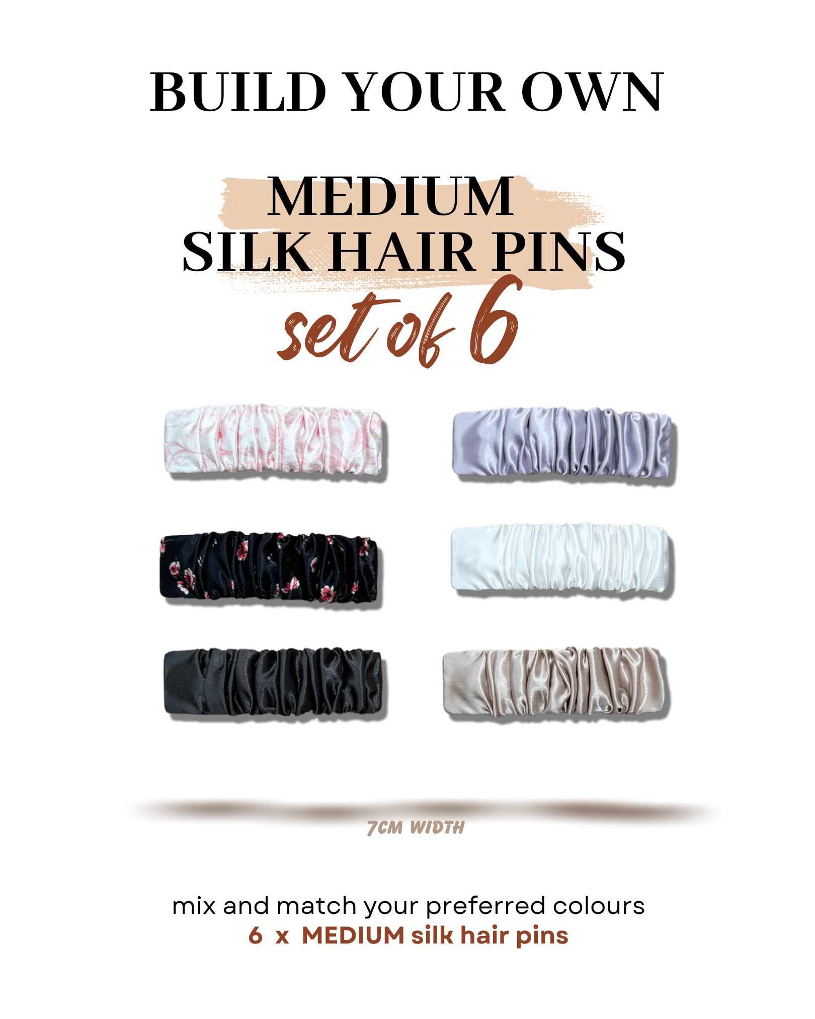 6 pieces of silk hair pins in MEDIUM size (7cm width)