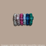 A tiny version of our signature 1cm silk hair ties, BASK™ mini silk scrunchies are comfortable, highly stretchable, and easy to remove without tugging your hair.