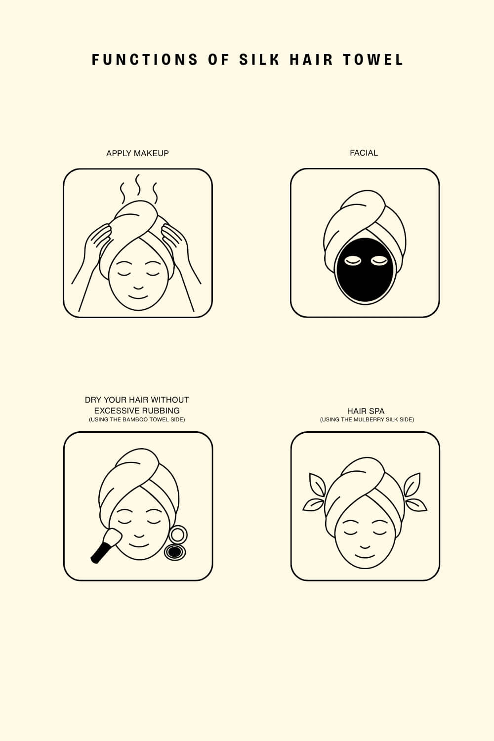 - The bamboo fibre towel dries your hair in just 3-5 minutes after it is applied to your damp hair.