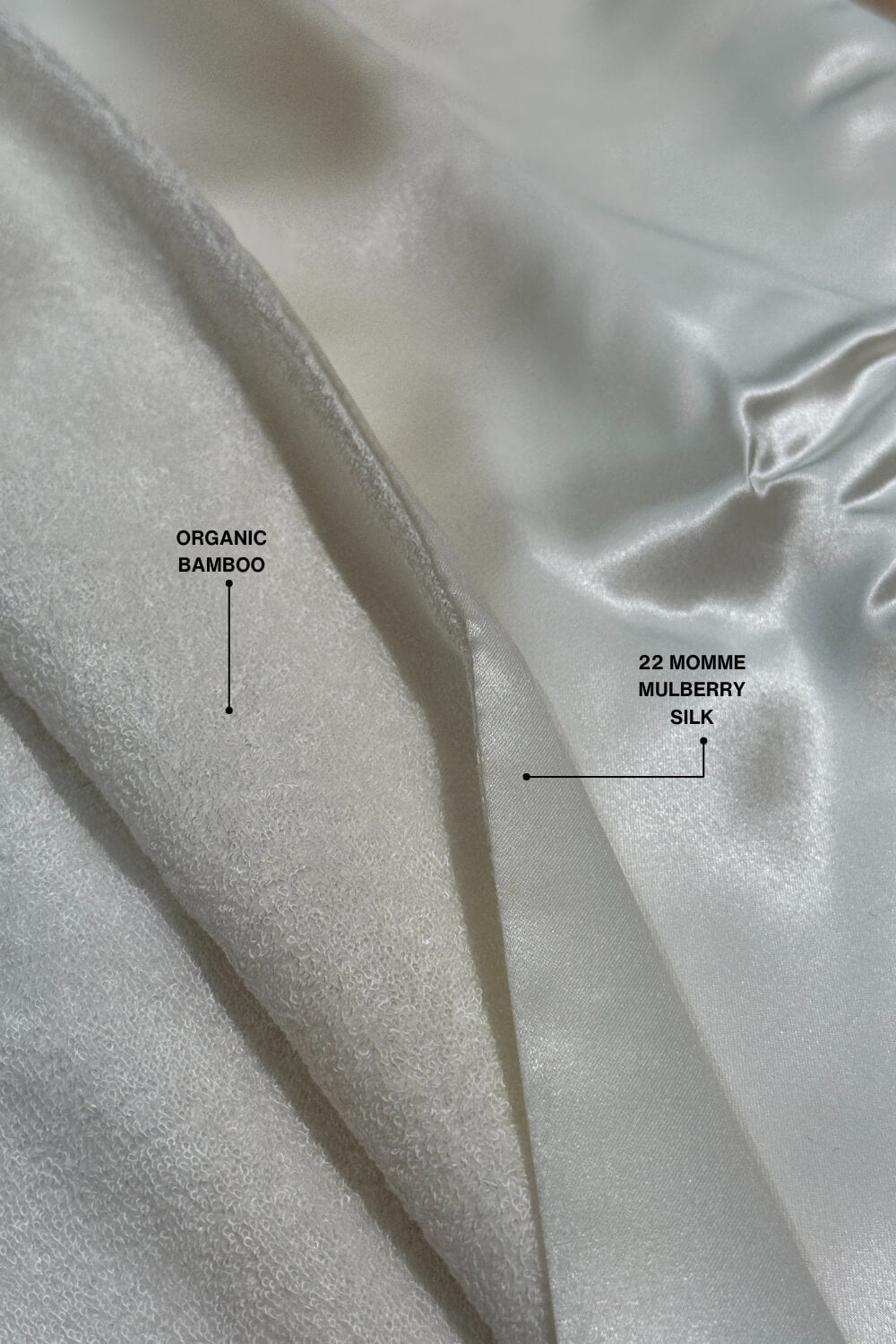 - Made from super fine bamboo fibre on one side and 100% pure mulberry silk on the other side