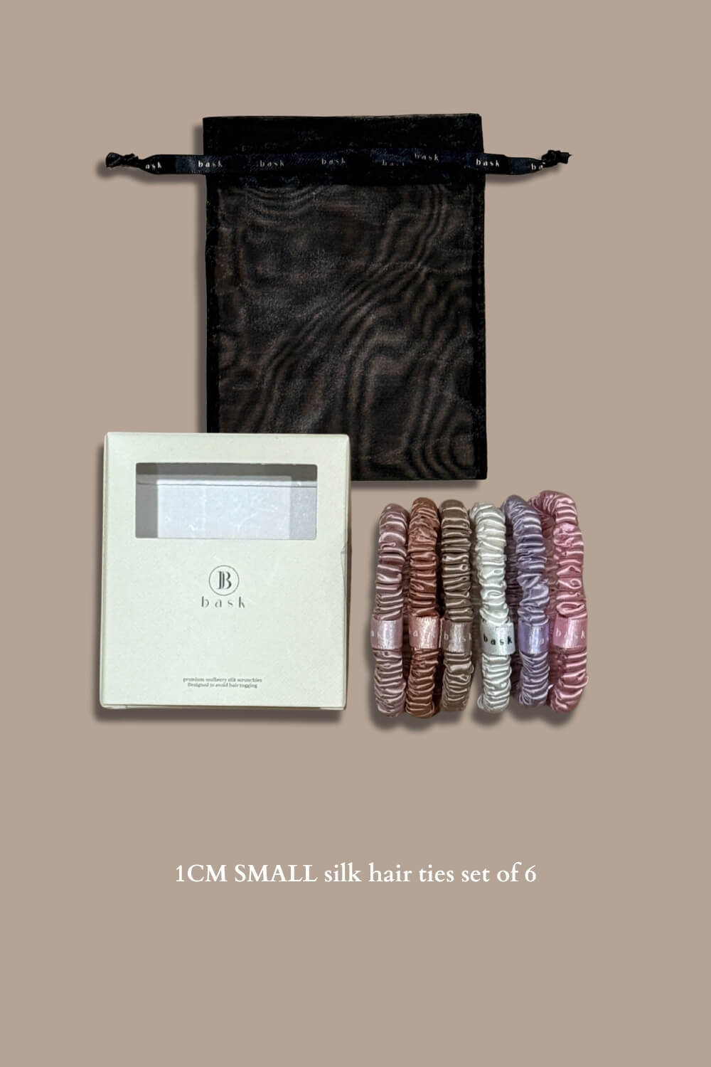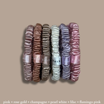 Bundle of 6 silk hair ties in pink, rose gold, champagne, pearl white, lilac, flamingo pink