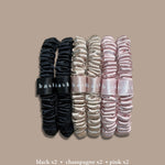 Bundle of 2 Black Silk Hair Ties, 2 Champagne Silk Hair Ties and 2 Pink Silk Hair Ties