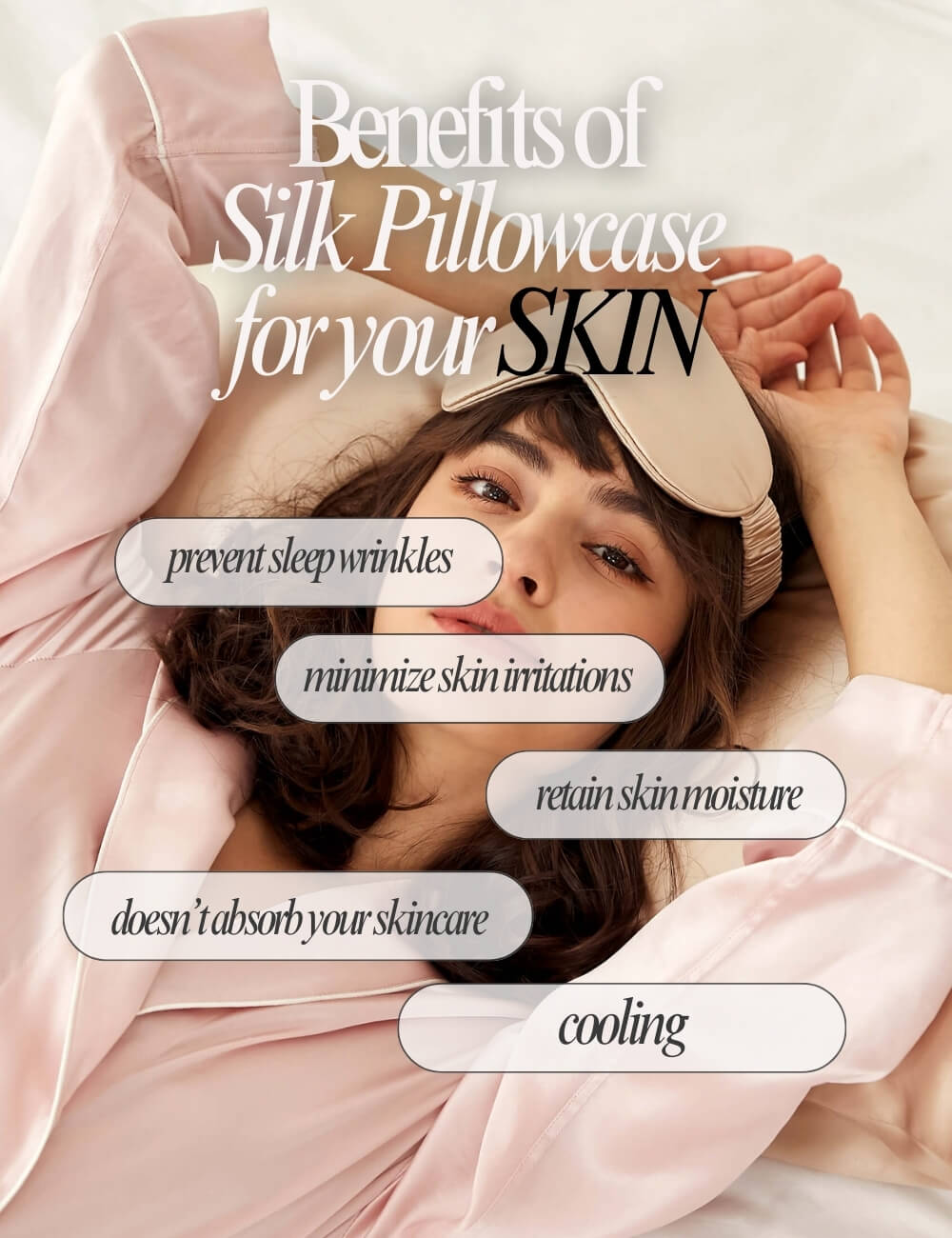Silk reduces friction and prevents sleep creases that can lead to fine lines over time.