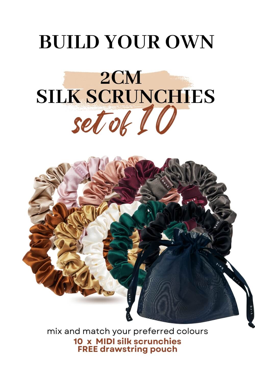 Customize your own 10-piece 2CM Midi Silk Scrunchies bundle set